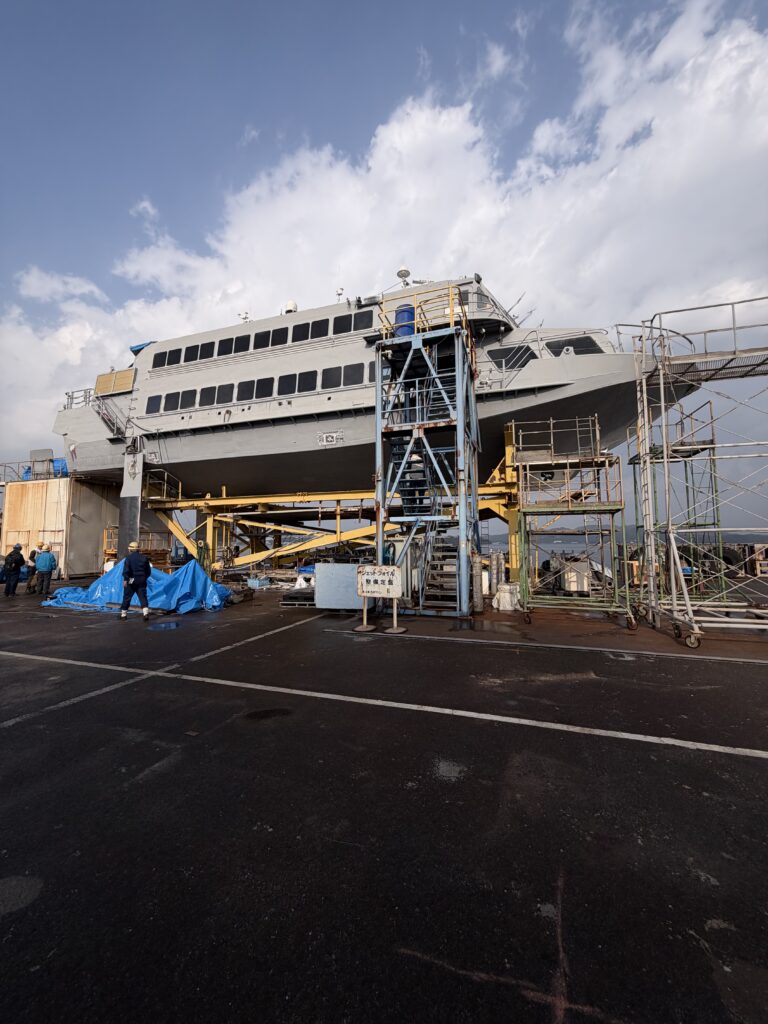そのような中、私は昨日から佐賀県の名村造船所を訪れ、久米島オーシャンジェット社の船(ジェットフォイル)の修繕状況を視察したしました。